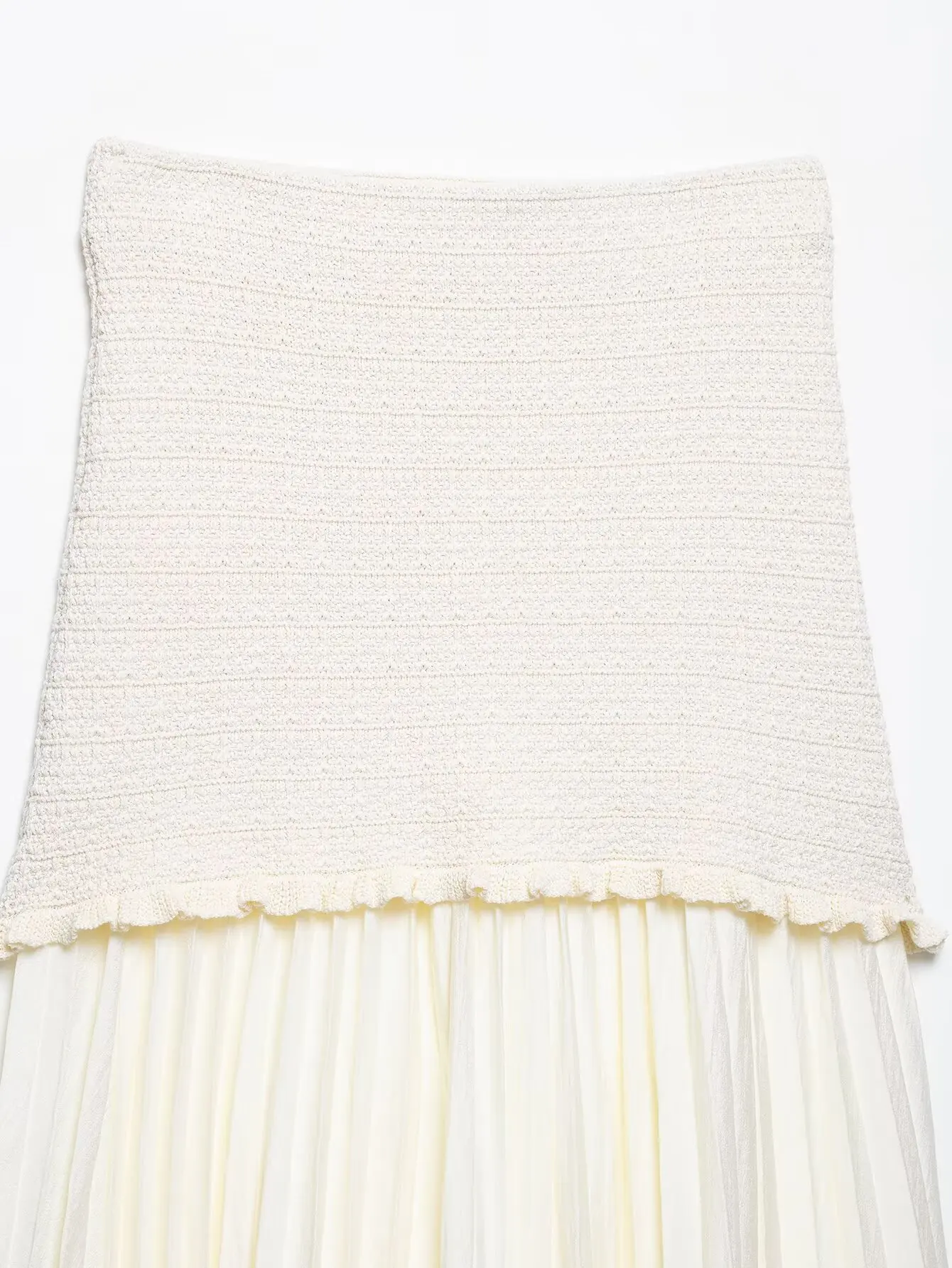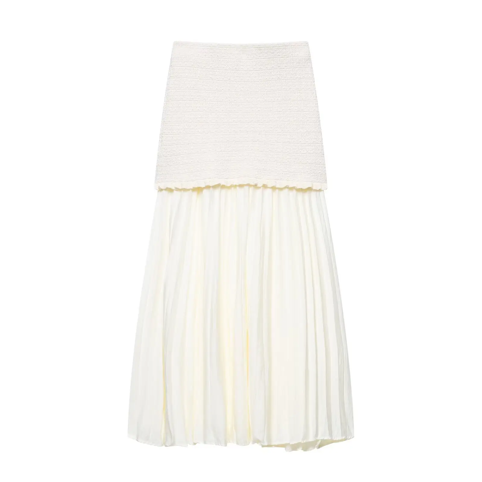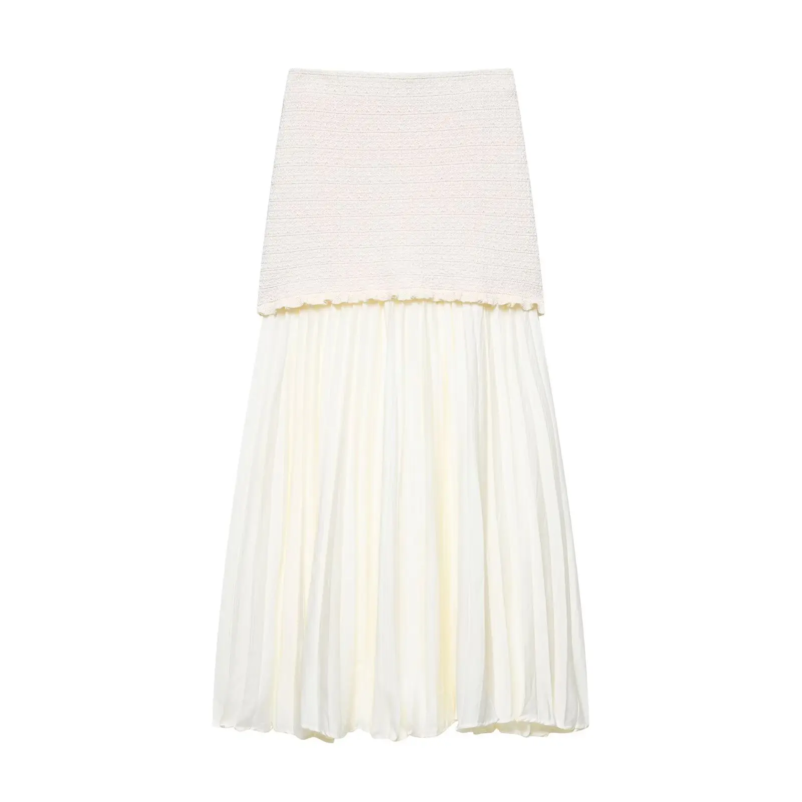TRAFZA Women Casual Solid Knitted Skirts Sets Off Shoulder Slim Strapless Vest Tops High Waist Patchwork Midi Skirt Streetwear