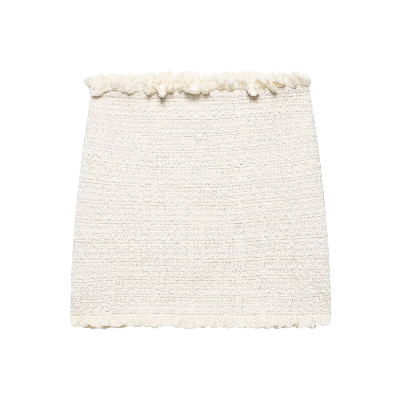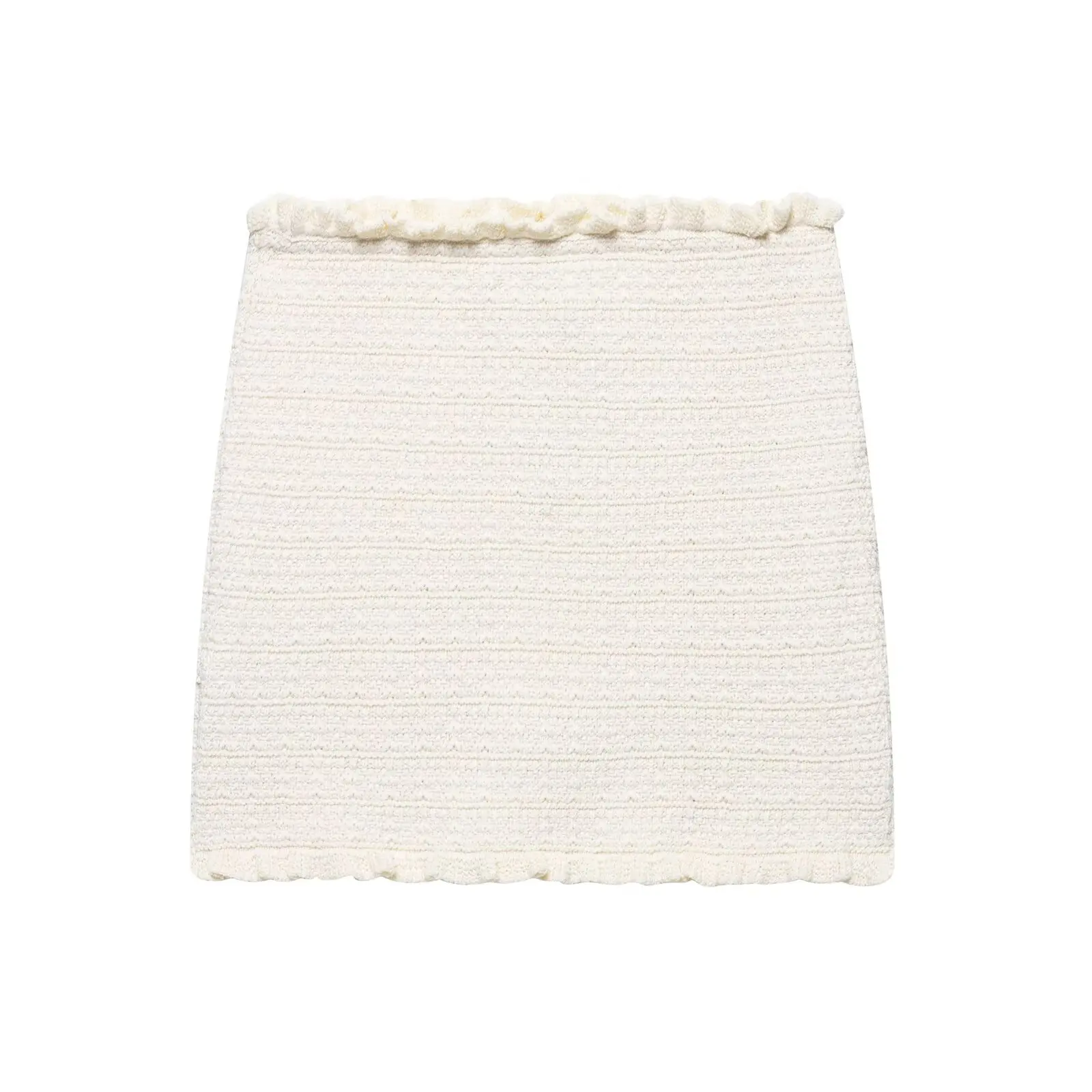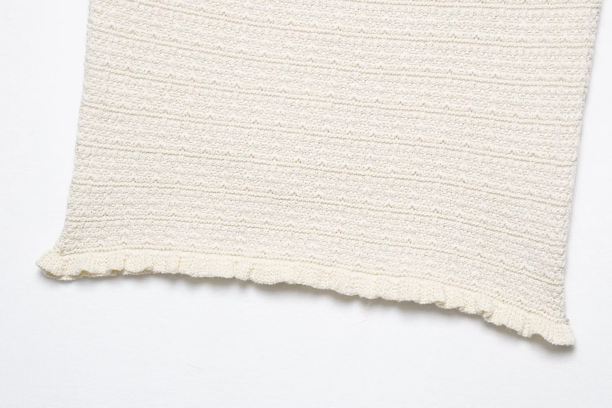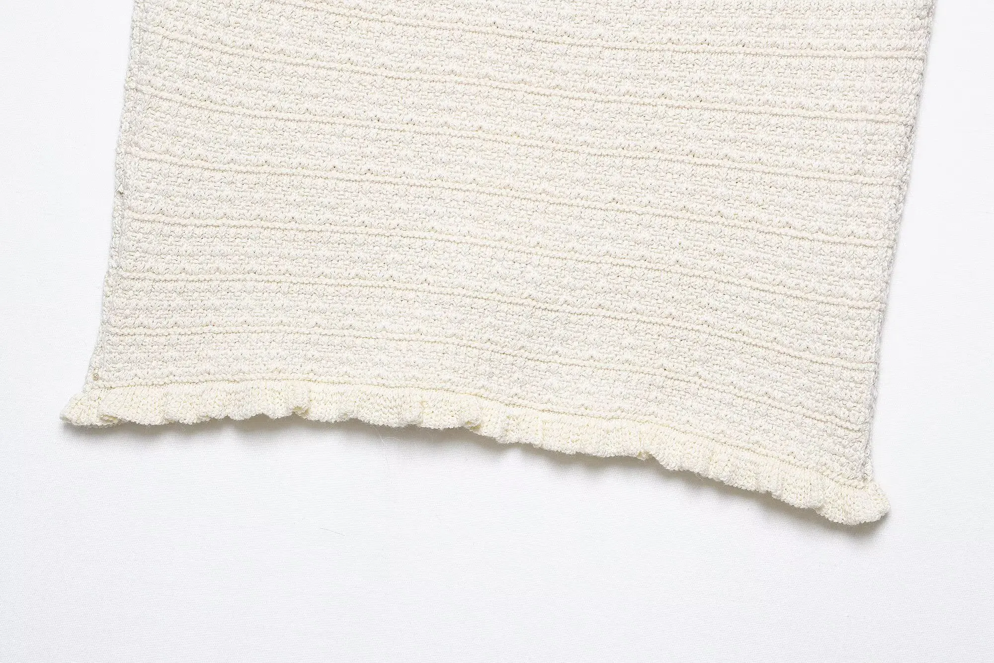 TRAFZA Women Casual Solid Knitted Skirts Sets Off Shoulder Slim Strapless Vest Tops High Waist Patchwork Midi Skirt Streetwear