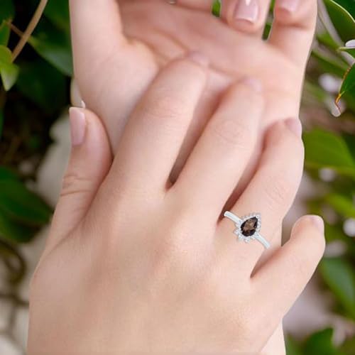 OMRANII Art Deco Pear Teardrop Natural Chocolate Smoky Quartz Vintage Style Halo CZ Wedding Engagement Rings For Women 925 Sterling Silver Gifts For Her