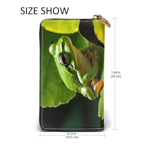 (Frog and Rain) Faux Leather Wallet Long Clutch Zipper Purse Card Holder Travel Coins Cash Organizer Phone Pocket 7.48 x 4.13 x 0.9 inches